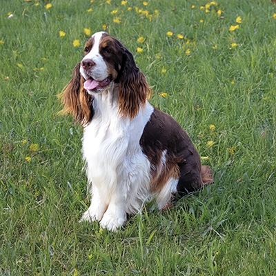 Aechie is on the smaller side but you can’t get a more beautiful Springer! He is a beautiful liver and whaite tri boy.